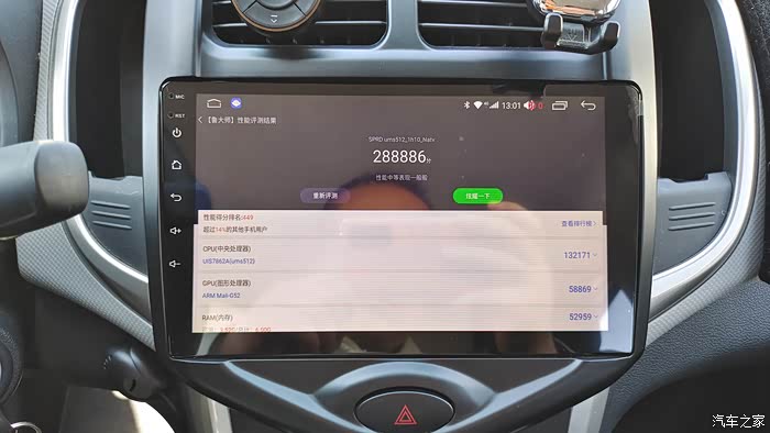 跑个分吧,最终是288886分,这在手机排行中属于中低端了吧,但是在车机里应该是天花板级别的,不信你用你的车机跑分试试。