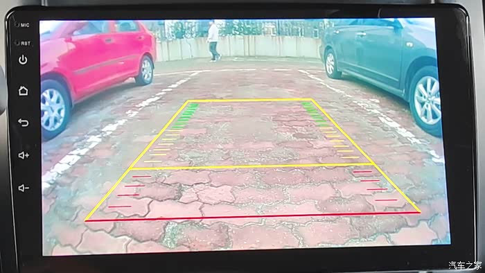 以前那个屏幕的倒车轨迹线不能调,看上去很别扭。倒车影像调好了,轨迹线的比例和车身尺寸匹配了,这样停车时更具有参考性。
