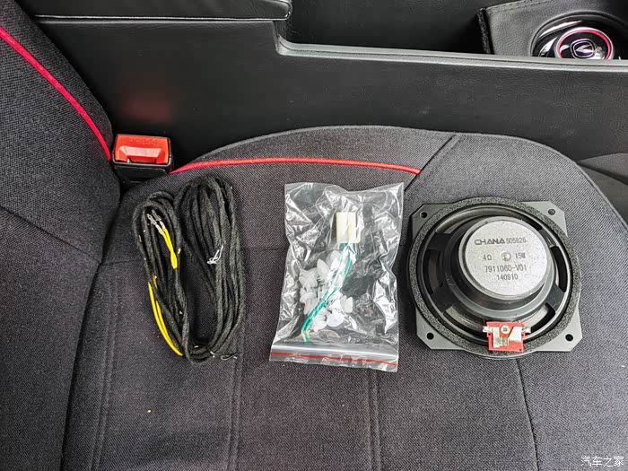 放音乐试试喇叭。右侧喇叭还没进门里,先临时外挂试试看看线束对不对。试了一下还可以,俩喇叭都能响了。