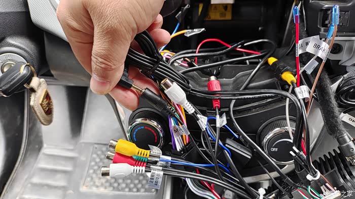 再将线束用电工胶带缠好,规矩一些,然后按顺序依次插接好,最后接上双闪按钮和收音机天线,然后将屏连同面板一起装回去就行了。