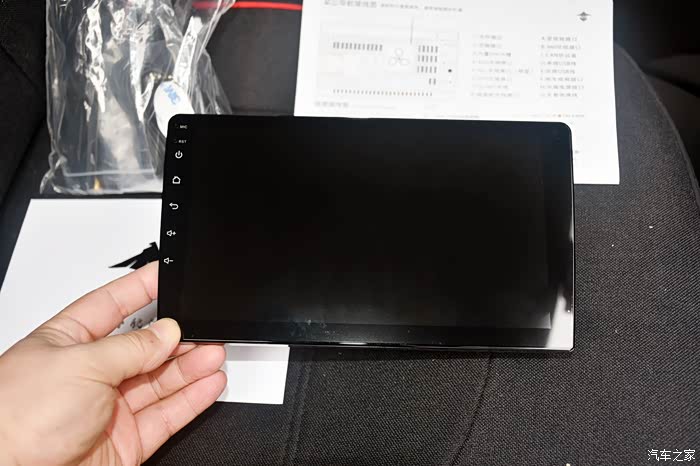 里面用泡沫做的托盘,车机用塑料膜保护着,整体看包装还算挺用心。文档有一本安装说明和一张保修卡。