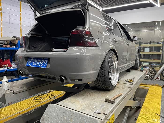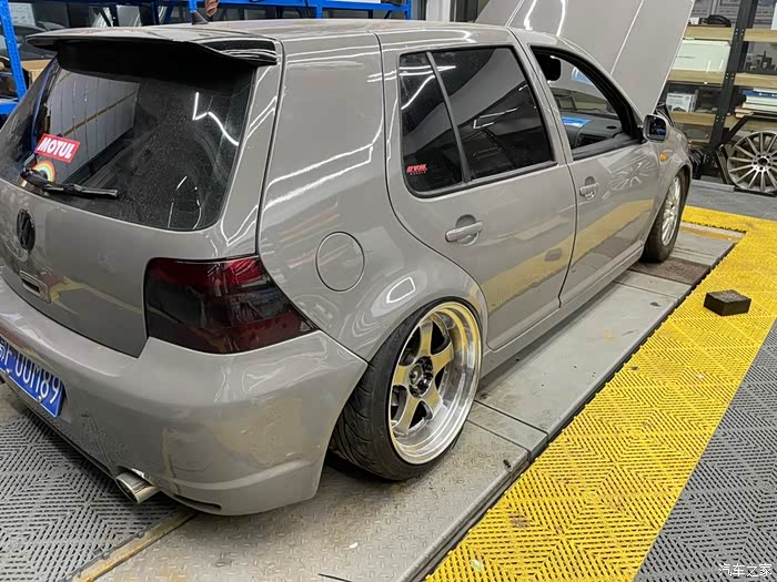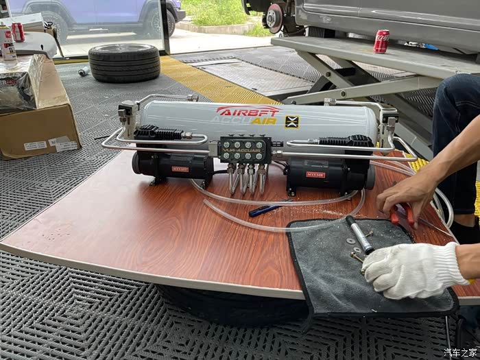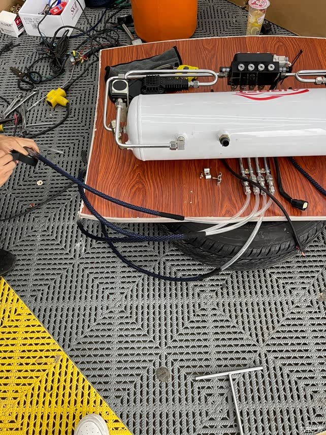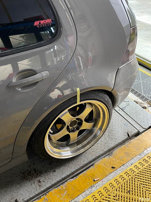因为前面轮毂之前用的9.5j的,导致降下去时候轮毂太宽,里面会顶着悬挂,导致不能完全降下去,所以前面只能先用原厂轮毂调试,再订两只8.5j轮毂和轮胎
