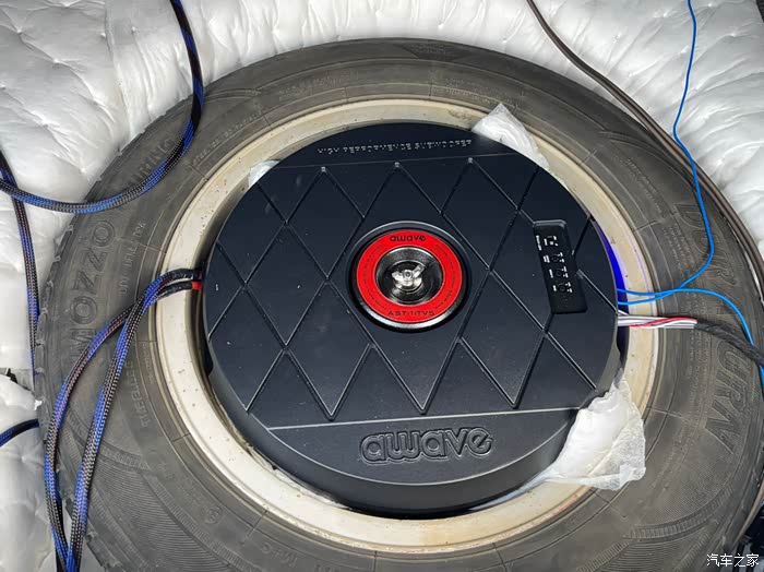因为后备箱装了气动,没有空间再放箱体低音炮,就换了个aware备胎低音炮,确实有点贵……