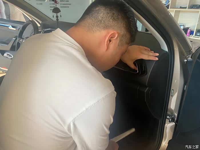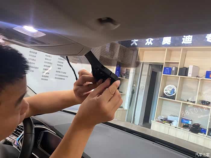 把装雨竿的壳壳固定在前档玻璃上 这个粘在玻璃上特别容易起泡泡,所以安装的时候要有足够的耐心 固定这个的胶太粘,又容易卷在一起,这一步我们师傅废掉了四块胶
