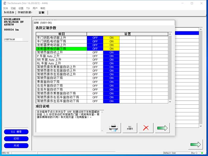 至于原车软件方面,很多人都关心刷隐藏这个事情,其实也不能叫刷,只是个性化设置,有些设置车机上可以直接设置,使用原车电脑打开的设置最有用的肯定是钥匙升降窗了,但是我发现汉兰达的天窗不能遥控打开了。