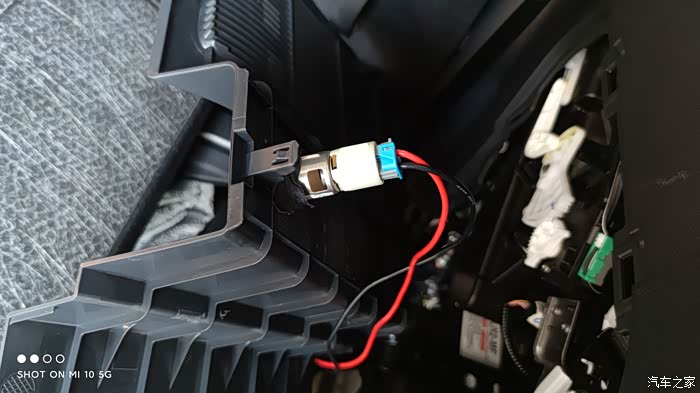 装上点烟器,连接电源,一定要用有插头的点烟器,这样的话你拆卸装饰板也很方便。