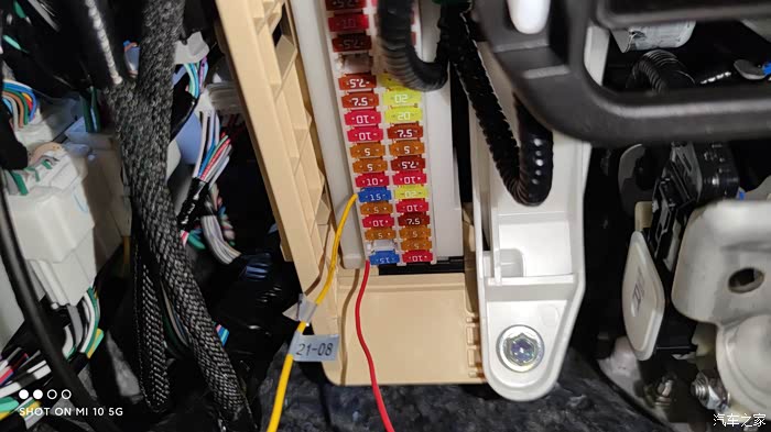 盖回保险管盖子。留意这图左下角,行车记录仪的取电线上还有一个保险管的,所以别担心没有保险管不安全。
