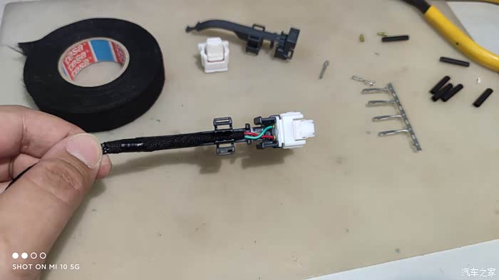 哈哈。。。继续干技术活,压端子做插头,四门无钥匙进入连接线。
