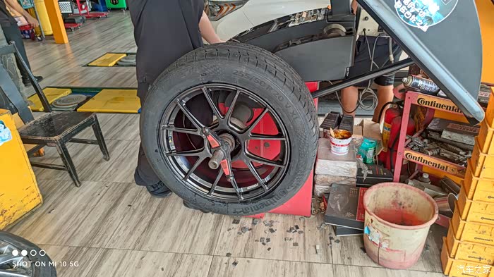 第一步肯定是要把原车的胎压传感器拆出来啦,轮胎扒开一点拆就行了。
