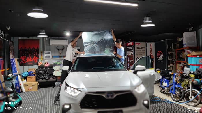 这这这操作,大家就不要吐槽了,我知道车衣是好东西,汉兰达车身这么大,贴完没个1万回不来家。。。但是一下子太猛了荷包喘不过气来。所以我就只贴了车门下面的塑料饰板,这个位置前轮带起来的沙石很多的,容易打伤害油漆,我压根就不打算安装挡泥板和车门踏板,安装踏板的车主我这操作就忽略吧。一条前杠的材料可以把两边车门下面的饰板贴完,这点小开销还是挺划算的。不过回头想想,好像装踏板也没贵多少钱,用车风格不同嘛,各人爱好。反正我妈上下车没吐槽,踏板我就先不考虑了。