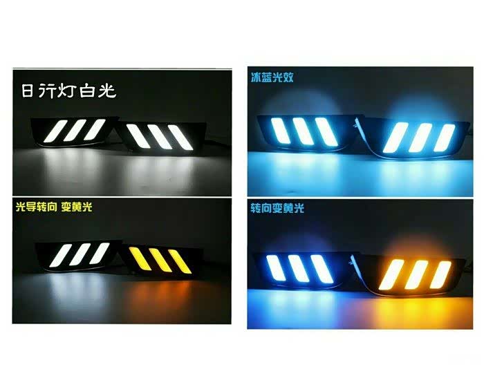 日行灯灯时候 亮白光 开大灯亮冰蓝 转向同步变黄色