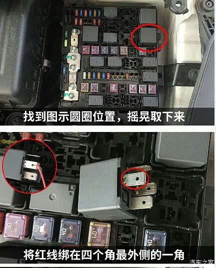 1.红线接电源盒继电器最外侧脚