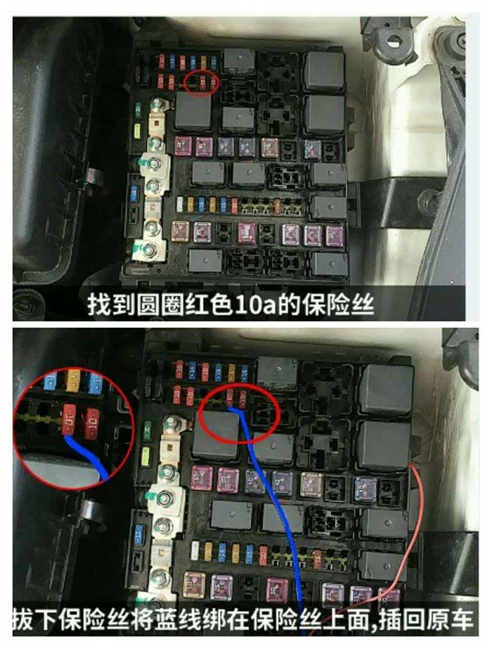 2. 蓝色线接近光灯保险就是电源盒内10A?红色保险