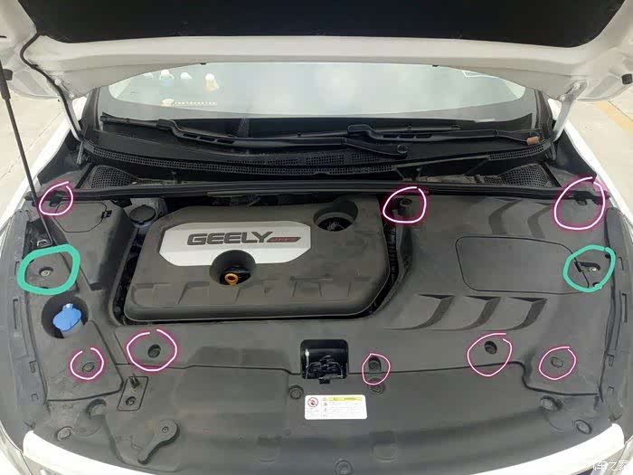 2.机舱盖板,先将机舱盖板放?去,对应位置,(注意靠近挡风玻璃那边,盖板是在橡胶条下面卡??)对应好各个孔位,把卡扣塞进去卡好即可。最后锁?两边?螺丝,机舱盖板就安装完工。