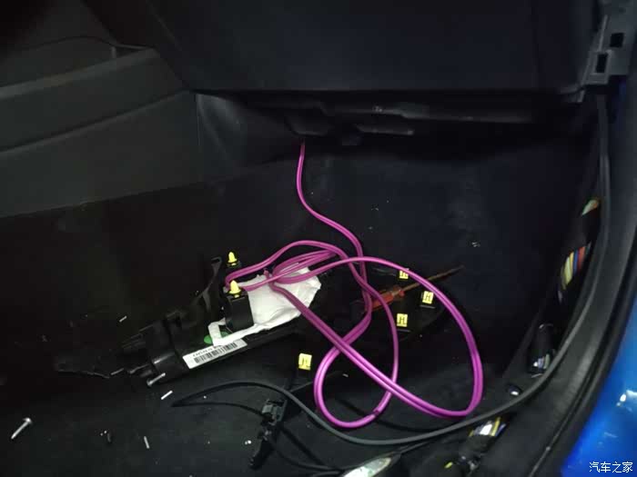 从刚刚被拆的中控台里导出一根线,用来接电池,当然不是直接接上去,还要经过保险,还有地线的保护。