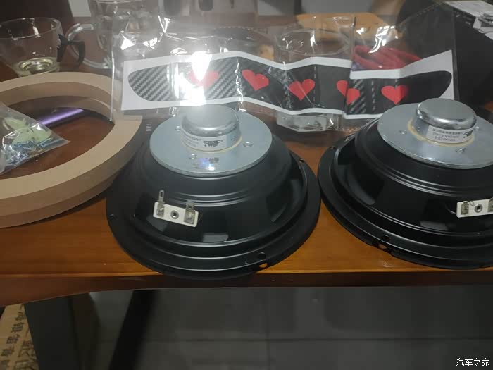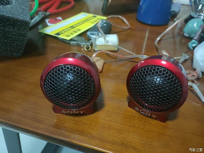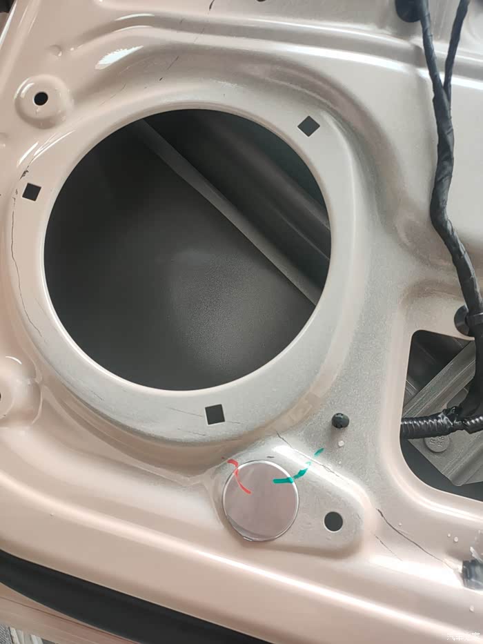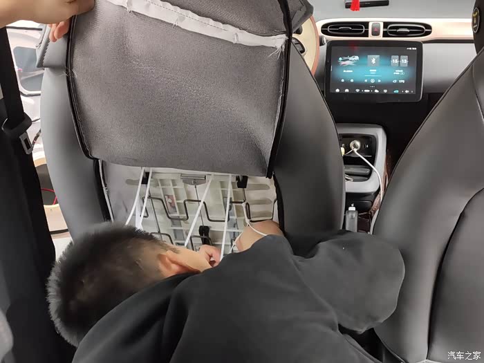 盘子缝好后,喇叭还在穿线,因为中配后门无预留音响线