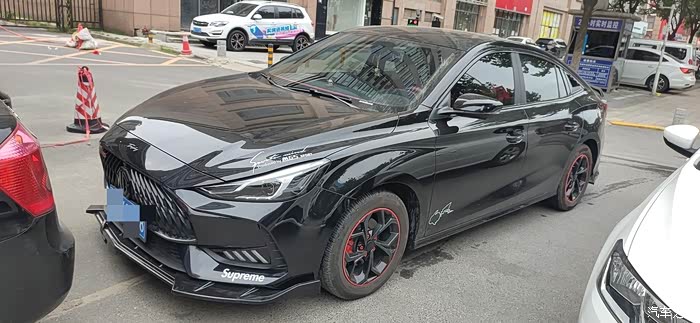 前杠也贴了个Supreme,这样远看,还是挺好看的,黑底白字
