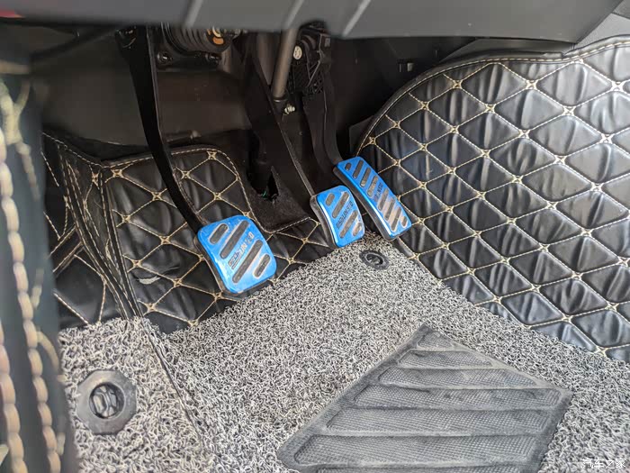 离合器 刹车 油门的防滑套我也给改了,原车的当时放哪里去了我也找不到了。总之原车的还是差点 这样的防滑效果好一些,看上去也好看呢
