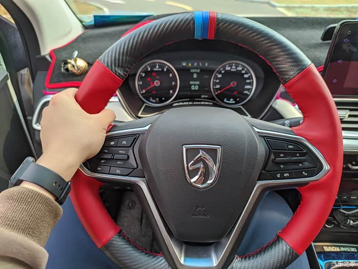 这个是我自己动手缝制的方向盘套,说起这个来是我的第三个方向盘 套,第一个买车时送的 直接就扔了。