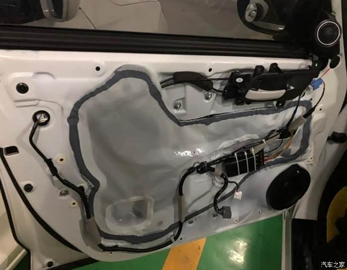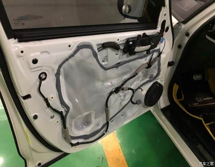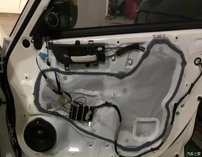 下面是后门的喇叭安装,后门就比较费事了,因为我这个是不能用后门留给我们备用的喇叭线直接对插的,需要用这个喇叭配线的插头,走线就要走全程。