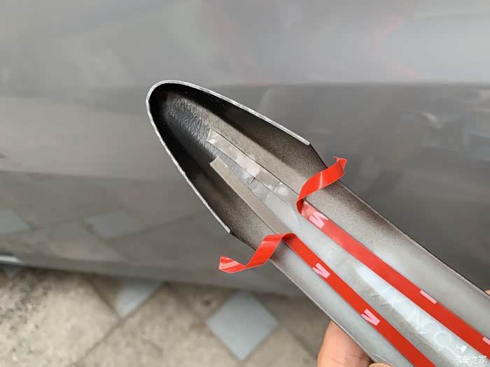 施工过程比较简单,就是贴的事,首先要把车停在一个阴凉光线好的位置,这样看的清楚不会贴歪,也不会太热。