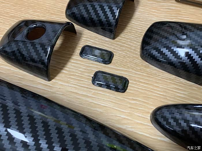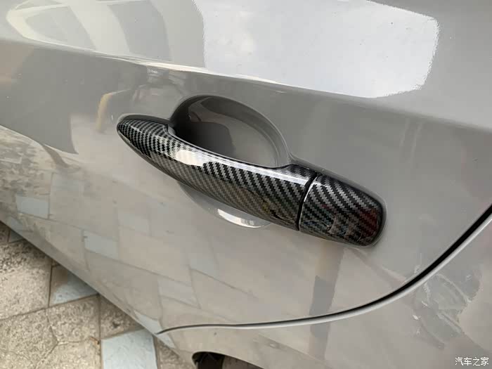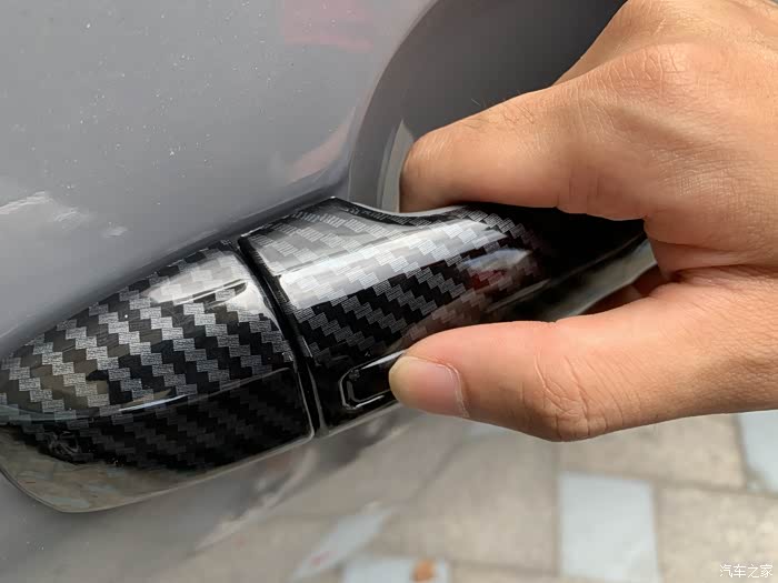 这套碳纤维纹理的门把手和我的后视镜外壳也很搭。