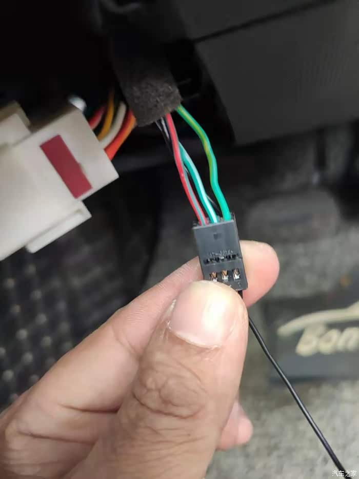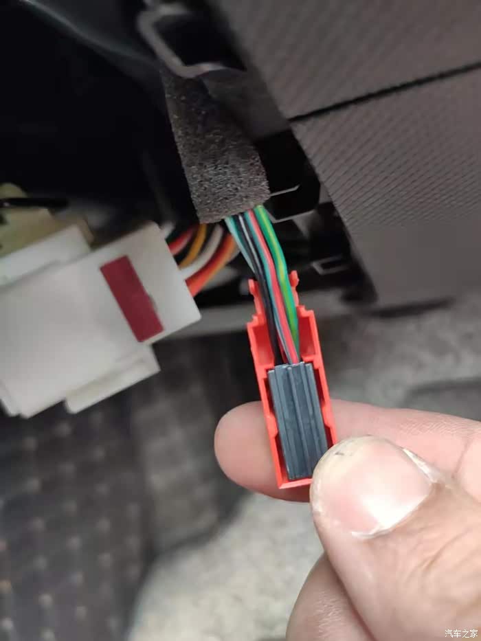 去掉卡扣后的线序,两根开关信号线,一根是灯光正极,一根是灯光负极,自己摸索不难