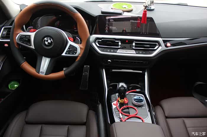 方向盘握持起来的手感很舒适,真皮的材质很有质感。方向盘中间的宝马logo我也采用了黑化的处理,配合上两侧多功能按键的高光黑材质看上去够COOL。
