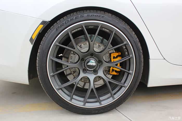 这款车我给它加入了AP的刹车卡钳,黄色的卡钳看上去足够运动,和银色与黑色轮圈相互映衬,显得更帅啦。