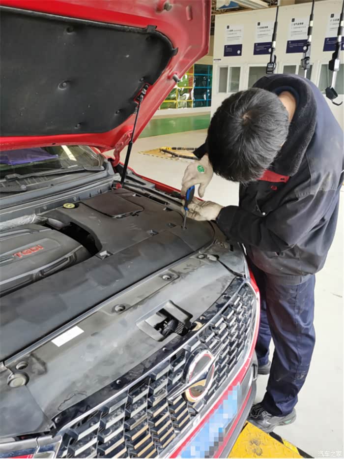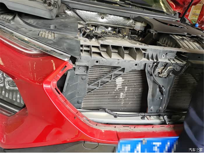售后的师傅开始工作了,师傅说要先拆前脸格栅,工作是比较认真的。