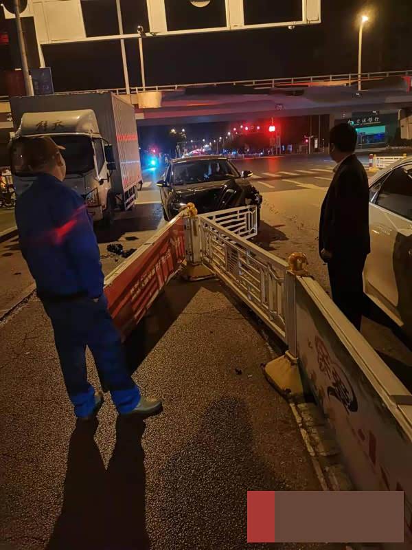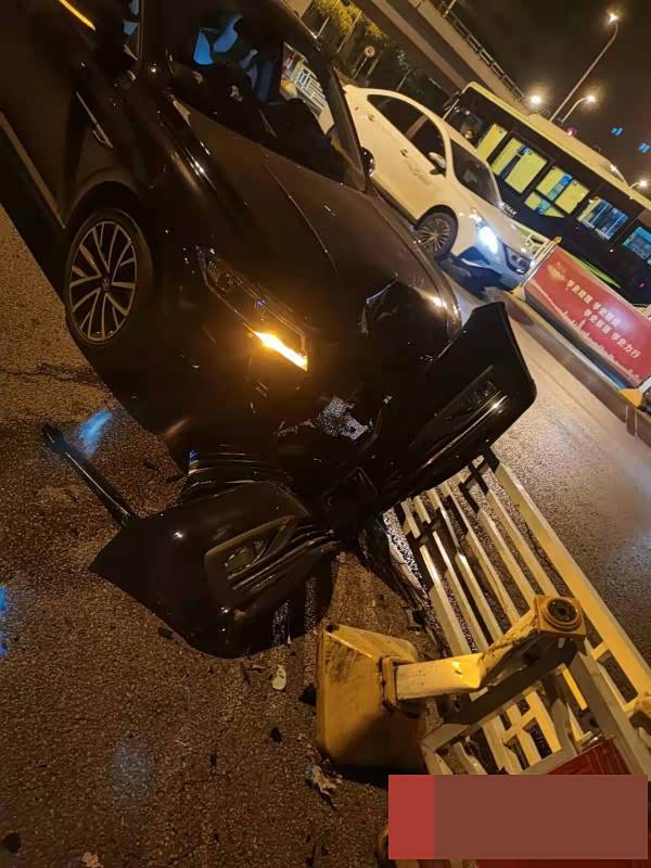 不料,就在一闭眼的瞬间,小轿车失去了控制,撞到了机动车道和非机动车道间的隔离护栏,导致车头损坏严重。幸运的是,因为时间较早,路上的车辆和行人较少,该起事故没有造成人员受伤。