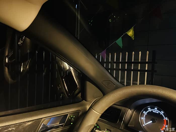 A柱换了黑色带高音开口的,也还好,没有那么特别不搭,顶如果是黑色的就好了。