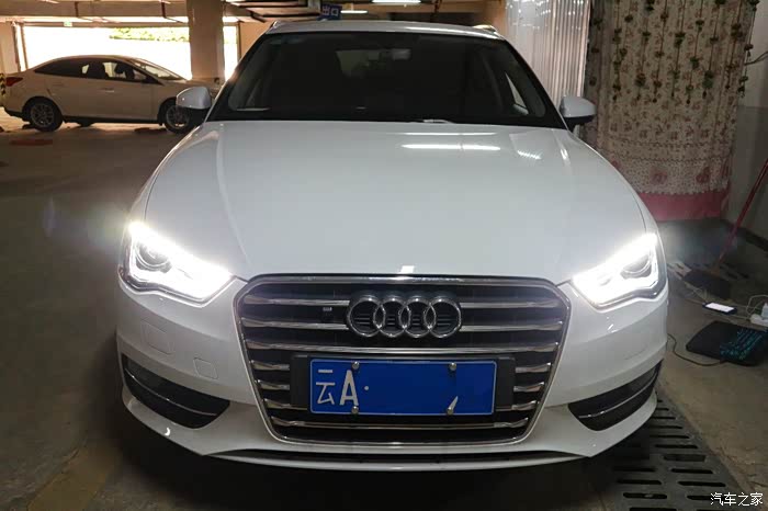 自己的小A3是16年10月份提的车。家里给自己配的小小代步工具;就直接买的最低配。。然后让我自己去装其他的东西,~~想装的东西好多啊,看论坛上各种大佬的改装,什么排气啊,什么包围啊,什么轮毂啊什么的;想要改的东西好多,但是好贵。。。只好先开着;开了一段时间后,油耗真的是很低,动力也够用;就是那个灯。。蜡烛灯真的不能忍,晚上根本就像点个蜡烛走路一样;计划了下钱自己买了一套灯,决定把先灯换成氙气;话不多说,看图看图!