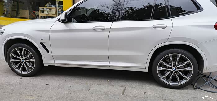 从19年提车到现在已经5万多公里了,一直使用原车普利司通防爆胎,原车胎有以下缺点:1、19寸轮毂造型,跟整个X3不搭,欠缺点霸气。2、19寸胎壁太厚,显得车身很臃肿。3、原车配的轮毂7.5的J值太小了,本来最佳的轮胎宽度只有225,宝马硬生生塞了一个245宽胎,轮胎鼓的很厉害,看上去很掉档次。