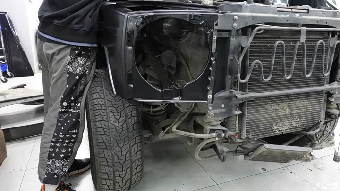 轮眉的拆卸大差不差,车头两边翼子板也需要拆卸更换成新款