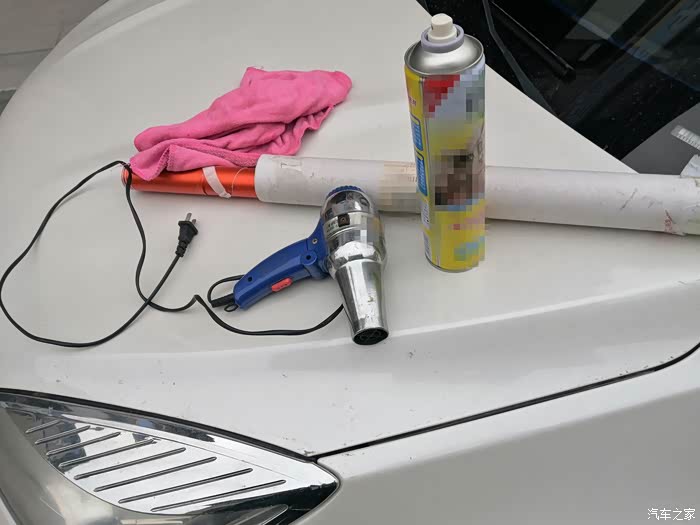 说说这次的工具和材料吧,吹风机,毛巾,橙色的贴纸,泡沫清洗剂,整个作业时间40分钟,先用吹风机把旧的贴纸加热,撕掉,然后用泡沫清洗剂清理干净残余的胶,最后进行比对裁剪,粘贴就可以了,带大家去看看作业吧!