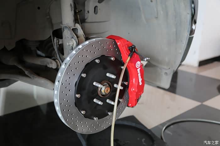 在这种情况下,尤其是对于我这样比较在意刹车效果的人来说,必须进行改装升级,于是经过一番研究之后,首先需要把原车的轮胎轮毂升级,然后才能进行刹车升级,开始的时候有考虑过AP卡钳,但后来感觉AP卡钳有点单薄,比较适合轿车升级改装使用,最终选择的是布雷博的大六卡钳,起码看着比较厚重,后期也确实没让我失望,刹车效果确实提升不少。