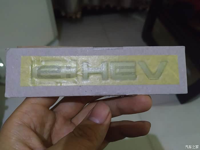 最先回来的是混动版后车标,自带固定胶及原车卡扣,赶紧拿去对比原车后标