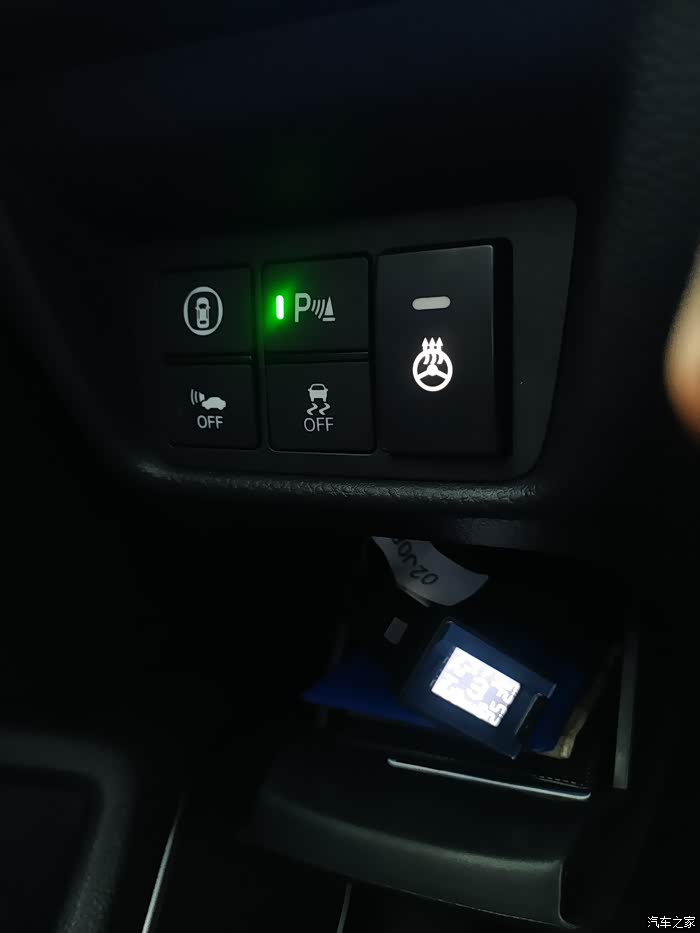 本想打孔安装的,因为胎压显示把孔位占了,可试过后发现不行,仪表亮度调节的饰条后面都是固定铁条和螺丝,不像正面看起来那样是空着的,那么就只能放孔位里。