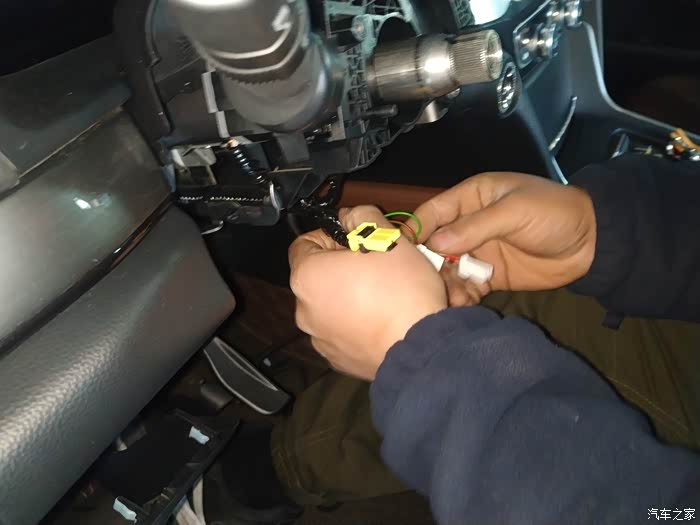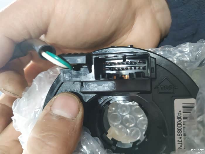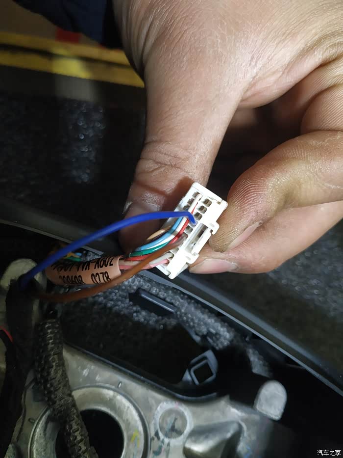 方向盘内上游丝接口,加热的蓝线和棕线插在了第二排孔位
