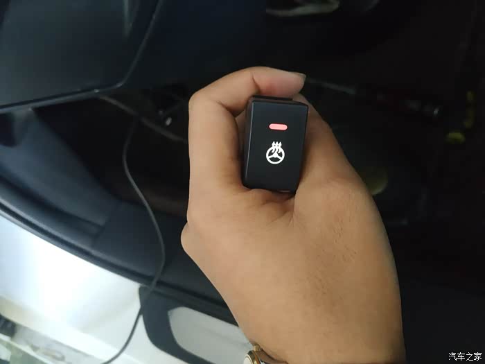 测试开关,摁下后红灯亮起,分分钟方向盘热乎啦