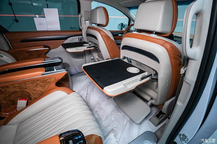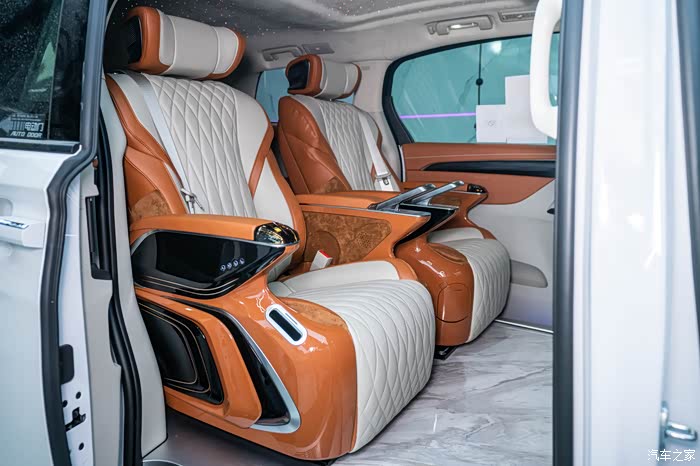 今天挑战的是耀影前脸包围,内饰色调是大叶棕,大气典雅,时尚感和居家感都有了,这个耀影前脸一直是我的心头最爱,相对比大面积的镀铬前脸,这个耀影黑色的梳妆格栅更加精致,也更耐看,除了包围和内饰,我们的老朋友也都一一列队出席,航空座椅、第三排沙发床、电动门、全景影像全都武装到位,下面清单里面一一列举出来了。