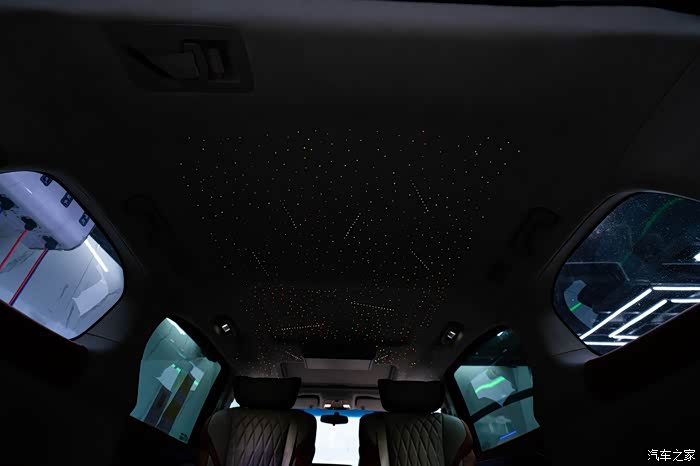 14.顶棚满天星;15.顶棚流星;16.前排大包围软包脚垫;17.大理石耐磨地板;18.铝合金LED迎宾踏板;19.电动左门+尾门;20.高配顶棚面板;21.扶手冰箱;22.原厂屏128色氛围灯;23.15.6寸大篷车电动电视;24.360全景+记录仪;25.原厂后视镜折叠;26.大视野镜片带加热;27.全车隔音;28.BOSE音箱升级;29.全车整套专用线束