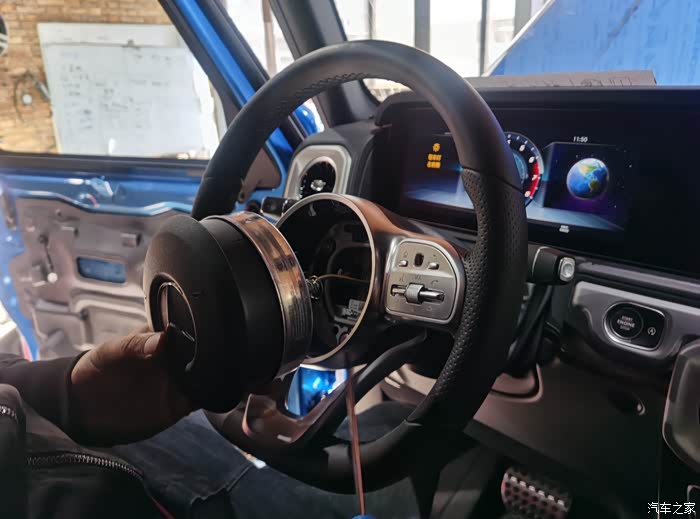 内饰上升级了AMG仪表和开机画面,原厂G63方向盘,原厂IWC万国表,副厂的前后出风口,AMG座椅字标,红色安全带以及AMG的钥匙壳等等。