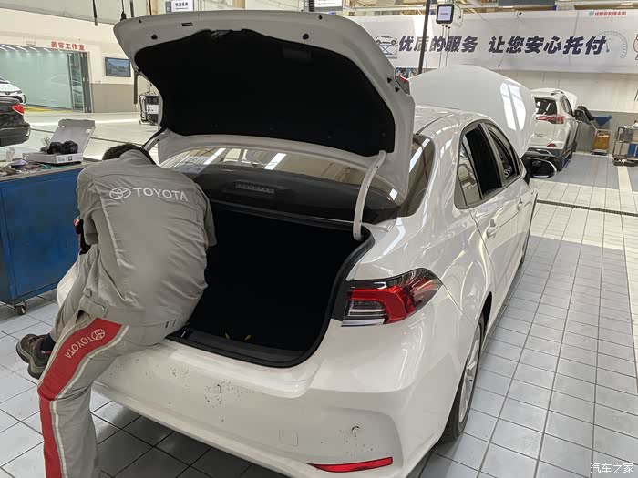 由于我提车是低配的,倒车影像雷达都没有,所以保养完之后顺便让师傅跟我装个倒车影像雷达,这个倒车影像雷达也是丰田出的,都是原厂的,当初选高配的话带这个要加几万块钱,我这次加装这个才花了几百块钱,感觉自己又赚到了。