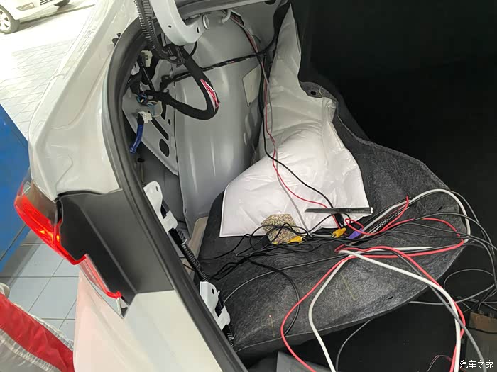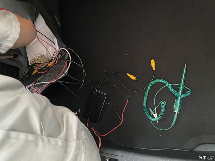 师傅再给倒车影像雷达接线,电要从蓄电池走过去