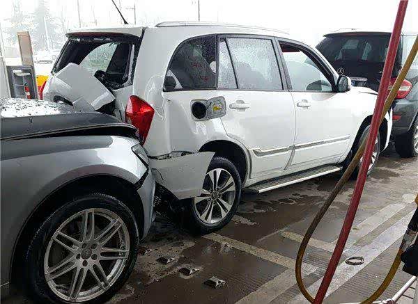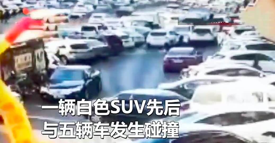 1月18日黑龙江大庆某购物中心的街道上由于女驾驶员误把油门当刹车短短7秒内连撞4车造成1人受伤;