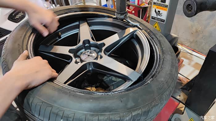 安装上胎,轮毂这套是8.5的,装起来有少少难搞