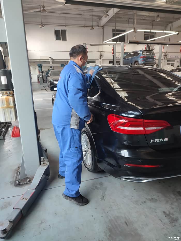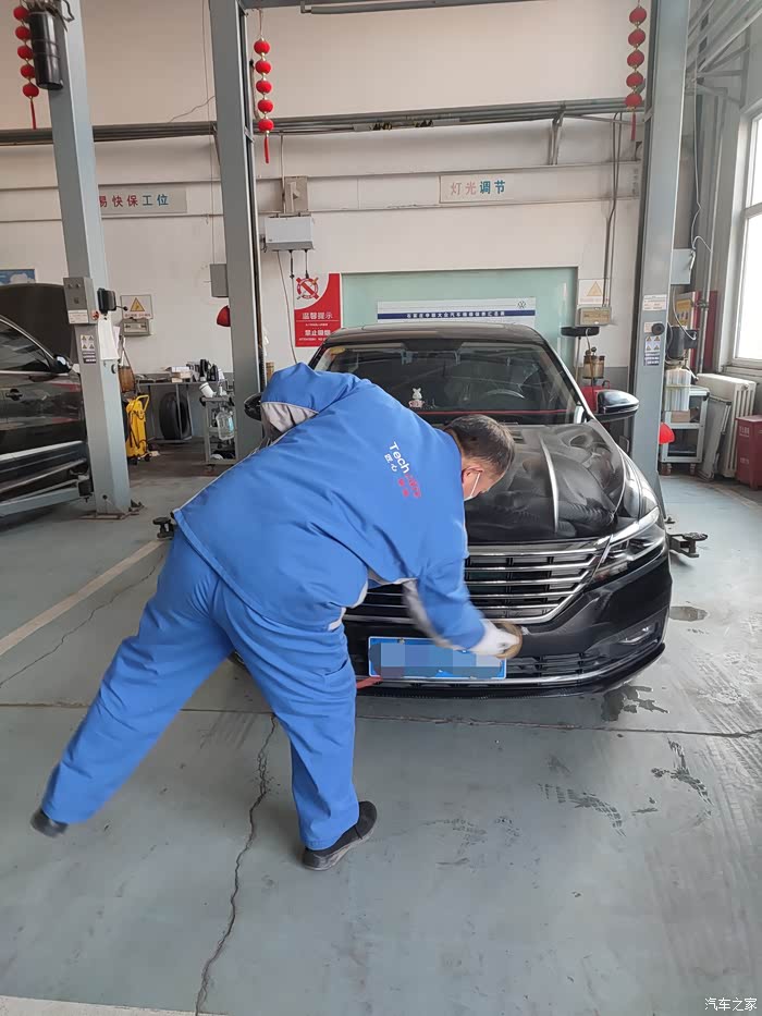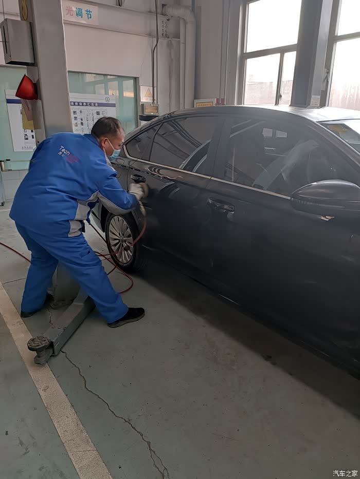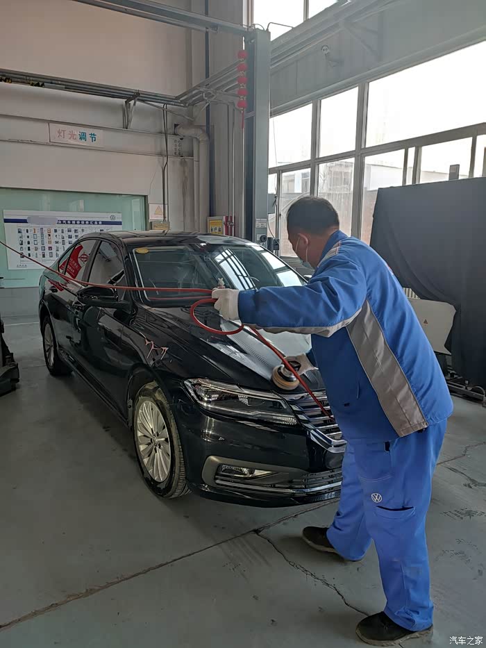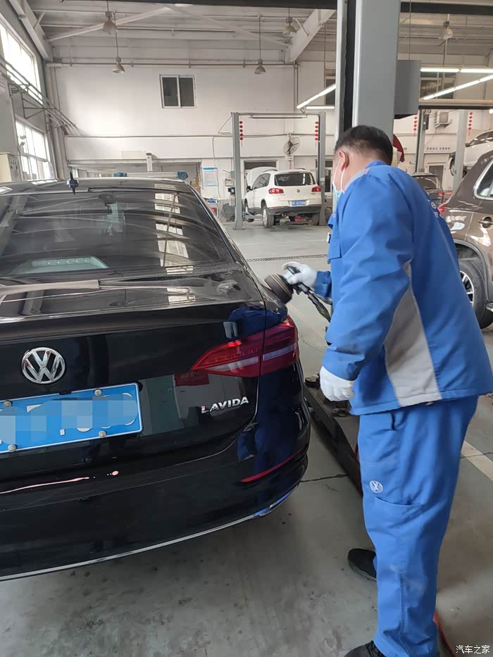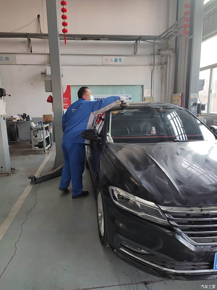 喷好工作人员,用打蜡工具开始摩擦车身。前后左右摩擦均匀。
