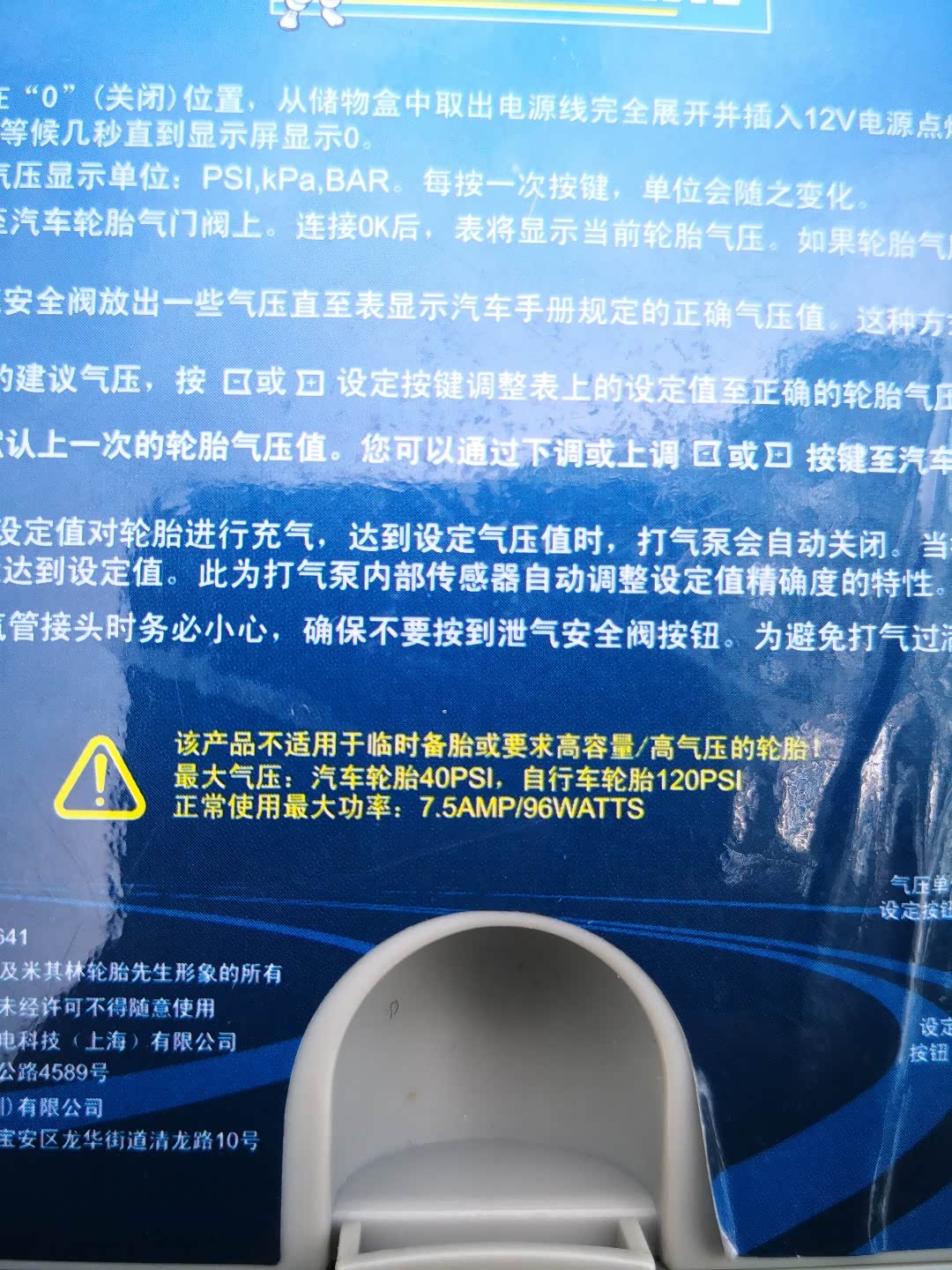 目前市面上车载打气泵种类繁多,如何挑选一款适合自己的打气泵呢。我选择的这款米其林ML4389,电子显示胎压,可以预设胎压 到指定压力自动停机。详细参数如下